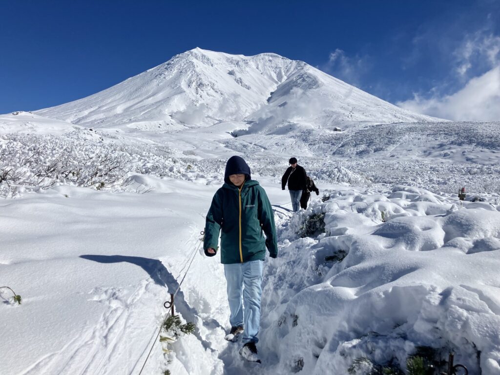 大雪山の旭岳は真冬の景色。標高のちがいで、真冬~初冬~晩秋~盛秋を楽しめました。