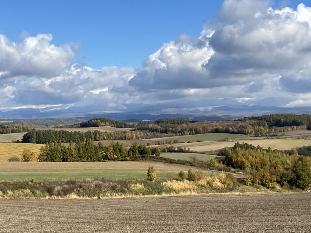 美瑛町の畑。どこまでも美しい風景がつづいています。