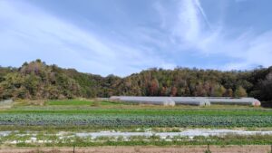 そして、丘陵地は延々と畑が続いてますが、平地はほぼ水田となってます。一区画が1~3haもある水田が、見渡す限りつづくのです。