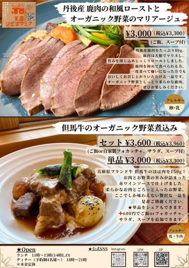 ランチ 11時 〜 15時 (14時L.O) ディナー(予約制4名様〜) 18時 〜 21時
